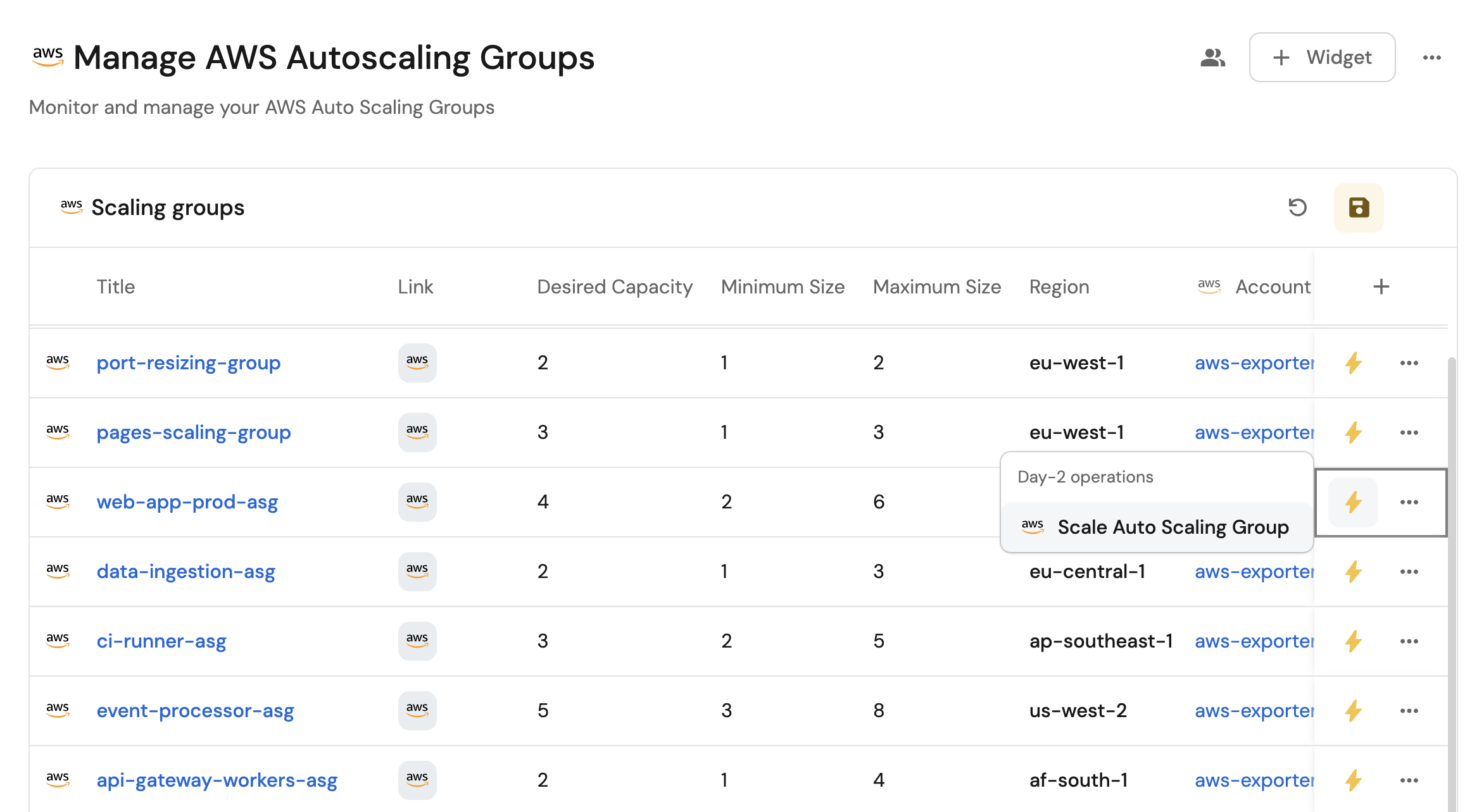 • Monitor the capacity and scaling configuration of all Auto Scaling Groups across accounts from a single view.